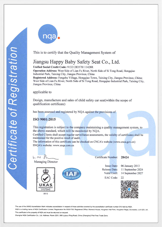 어린이 여행 안전 분야에서 표준의 진화는 생명 과학에 대한 인간의 이해가 깊어짐을 나타냅니다. JIANGSU HAPPY BABY 안전 시트 CO., LTD. 는 어린이 안전 시트가 단순한 표준이나 인증이 아니라 책임과 약속이라고 굳게 믿습니다. 전 세계 가족의 신뢰받는 수호자로서 우리는 모든 의자의 탄생이 가족에 대한 이해와 생명에 대한 경외심임을 이해합니다.