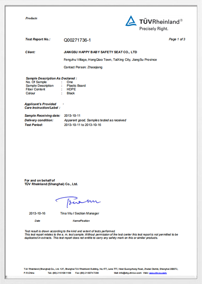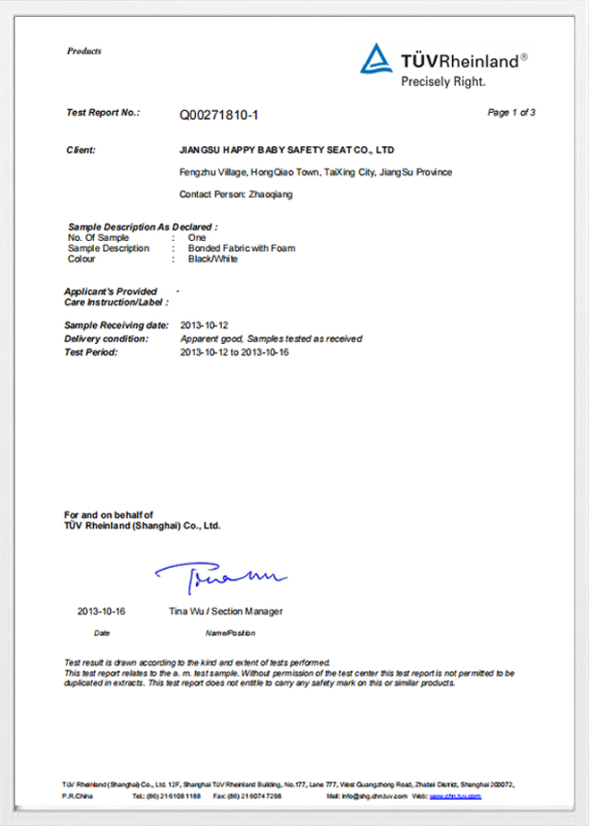 안전은 우리 제품의 모든 단계에 내장되어 있습니다. JIANGSU HAPPY BABY 안전 시트 CO., LTD. 고급 활용 충격 흡수 재료 EPP 및 EPS 폼과 같은 폼은 충격 중에 미세한 수준에서 붕괴되어 운동 에너지를 소산합니다.